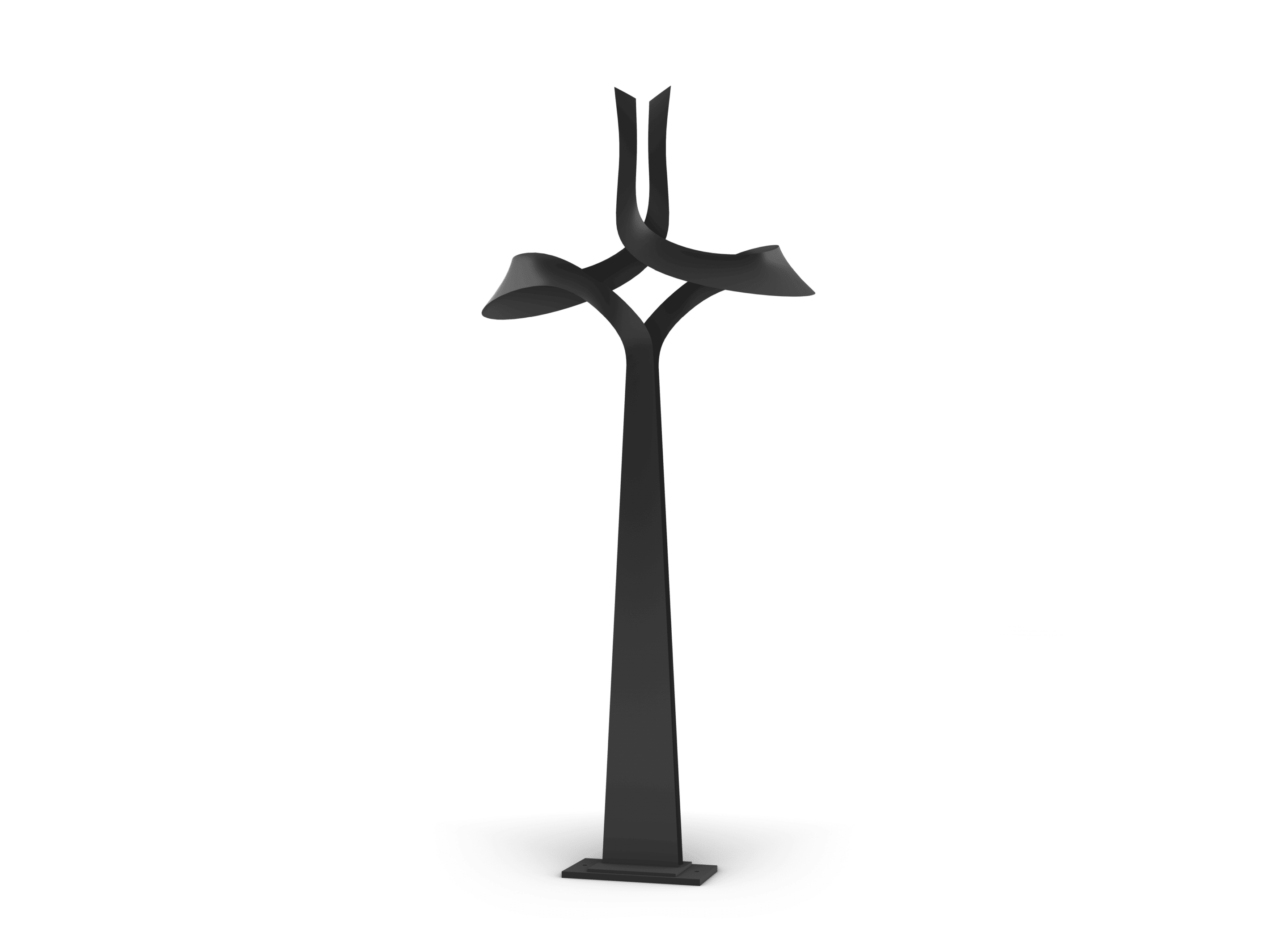 Deux rubans se font face dans une symétrie parfaite, s’élevant vers le ciel sans jamais se rejoindre. Une croix suspendue entre équilibre et aspiration, qui invite le regard à s’élever.